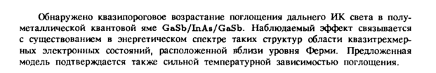 Квазипороговый характер поглощения дальнего ИК света в квантовых ямах GaSb/InAs/GaSb