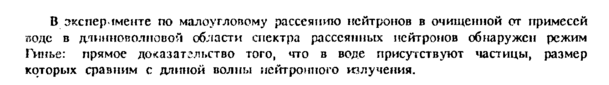 В эксперименте по малоумопому рассеянию нейтронов в очищенной от примесей воде в длинноволновой области спектра рассеянных нейтронов обнаружен режим Гинье: прямое доказательство того, что в воде присутствуют частицы, размер которых сравним с длиной волны нейтронного излучения.