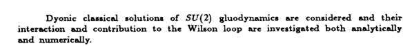 Dyonic classical solutions of SU(2) gluodynamics are considered and their interaction and contribution to the Wilson loop are investigated both analytically and numerically.