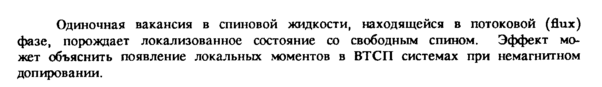 Одиночная вакансия в спиновой жидкости, находящейся в потоковой (flux) фазе, порождает локализованное состояние со свободным спином. Эффект может объяснить появление локальных моментов в ВТСП системах при немагнитном допировании.