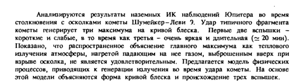 Анализируются результаты наземных ИК наблюдений Юпитера во время столкновения с осколками кометы Шумейкер-Леви 9. Удар типичного фрагмента кометы генерирует три максимума на кривой блеска. Первые две вспышки -короткие и слабые, в то время как третья очень яркая и длительная (~ 20 мин). Показано, что распространенное объяснение главного максимума как теплового излучения атмосферы, нагретой падающим на нее газом, выброшенным вверх при взрыве осколка, не является удовлетворительным. Предлагается модель физических процессов, приводящих к генерации излучения во время удара кометы. На основе этой модели объясняются форма кривой блеска и происхождение трех вспышек.