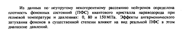 Из данных по · неупругому некогерентному рассеянию нейтронов определена плотность фононных состояний (ПФС) квантового кристалла параводорода при гелиевой температуре и давлениях: 0, 80 и 150МПа. Эффекты ангармонического затухания фононов в существенной степени влияют на вид реальной ПФС в этом диапазоне давлении.
