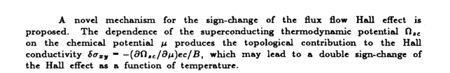 A novel mechanism for the sign-change of the flux flow Hall effect is proposed. The dependence of the superconducting thermodynamic potential Qtc on the chemical potential μ produces the topological contribution to the Hall conductivity 6σΙ9 — — (dO*c/cV)ec/£, which may lead to a double sign-change of the Hall effect as a function of temperature.