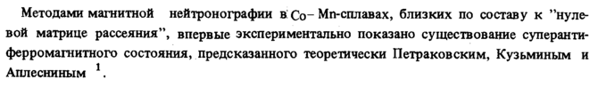 Методами магнитной нейтронографии в: СоМп-сплавах, близких по составу к "нулевой матрице рассеяния", впервые экспериментально показано существование суперанти-ферромагнитного состояния, предсказанного теоретически Петраковским, Кузьминым и Аплесниным 1.