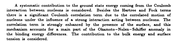 A systematic contribution to the ground state energy coming from the Coulomb interaction between nucleons is considered. Besides the Hartree and Fock terms there is a significant Coulomb correlation term due to the correlated motion of nucleons under the influence of a strong interaction acting between nucleons. The correlation term is strongly enhanced by the presence of the surface, and this mechanism accounts for a main part of the Okamoto-Nolen-Schiffer anomaly in the binding energy differences. The contribution to the bulk energy and surface tension is considered.