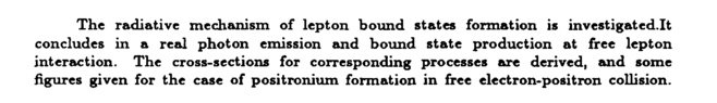 The radiative mechanism of lepton bound states formation is investigated.lt concludes in a real photon emission and bound state production at free lepton interaction. The cross-sections for corresponding processes are derived, and some figures given for the case of positronium formation in free electron-positron collision.