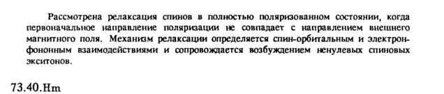Рассмотрена релаксация спинов в полностью поляризованном состоянии, когда первоначальное направление поляризации не совпадает с направлением внешнего магнитного поля. Механизм релаксации определяется спин-орбитальным и электрон-фононным взаимодействиями и сопровождается возбуждением ненулевых спиновых экситонов. 73.40.Hm