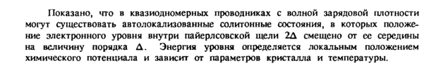 Солитоны с локализованным электронным состоянием в квазиодномерных проводниках с волной зарядовой плотности