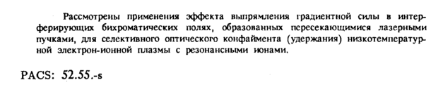 Рассмотрены применения эффекта выпрямления градиентной силы в интерферирующих бихроматических полях, образованных пересекающимися лазерными пучками, для селективного оптического конфаймента (удержания) низкотемпературной электрон-ионной плазмы с резонансными ионами. Ρ ACS: 52.55.-s
