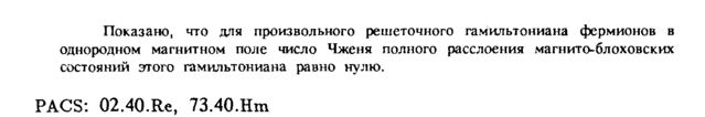 Показано, что для произвольного решеточного гамильтониана фермионов в однородном магнитном поле число Чженя полного расслоения магнито-блоховских состояний этого гамильтониана равно нулю. PACS: 02.40.Re, 73.40.Hm