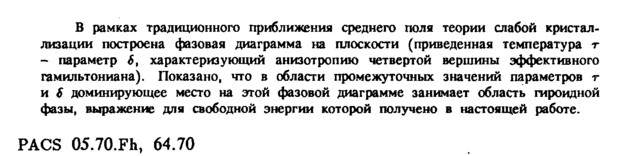 В рамках традиционного приближения среднего поля теории слабой кристаллизации построена фазовая диаграмма на плоскости (приведенная температура τ параметр 6, характеризующий анизотропию четвертой вершины эффективного гамильтониана). Показано, что в области промежуточных значений параметров г и S доминирующее место на этой фазовой диаграмме занимает область гироидной фазы, выражение для свободной энергии которой получено в настоящей работе. PACS 05.70.Fh, 64.70