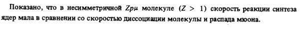 молекуле (Ζ > 1) скорость реакции синтеза ядер мала в сравнении со скоростью диссоциации молекулы и распада мюона.