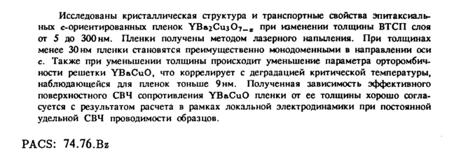 Исследованы кристаллическая структура и транспортные свойства эпитаксиаль-ных с-ориентированных пленок УВагСизС^, при изменении толщины ВТСП слоя от 5 до 300 нм. Пленки получены методом лазерного напыления. При толщинах менее 30 нм пленки становятся преимущественно монодоменными в направлении оси с. Также при уменьшении толщины происходит уменьшение параметра орторомбич-ности решетки YBaCuO, что коррелирует с деградацией критической температуры, наблюдающейся для пленок тоньше 9нм. Полученная зависимость эффективного поверхностного СВЧ сопротивления YBaCuO пленки от ее толщины хорошо согласуется с результатом расчета в рамках локальной электродинамики при постоянной удельной СВЧ проводимости образцов. PACS: 74.76.Bz