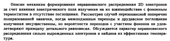 Описан механизм формирования неравновесного распределения 2D электронов за счет влияния электрического поля излучения на их взаимодействие с фононным термостатом в отсутствие поглощения. Рассмотрен случай нерезонансной поперечно поляризованной накачки, когда межподзонные переходы и друдевское поглощение излучения несущественны, но вероятности переходов с участием фононов не удовлетворяют принципу детального равновесия. Обсуждается характер неравновесного распределения сильно вырожденных электронов и найдена их эффективная температура.