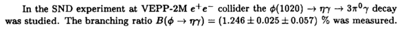 In the SND experiment at VEPP-2M e+e~ collider the 0(1020) -> r/7 -> 3π°7 decay was studied. The branching ratio Β(φ -> ηη) — (1.246 ± 0.025 ± 0.057) % was measured.
