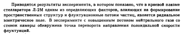 Приводятся результаты эксперимента, в котором показано, что в краевой плазме стелларатора Л-2М одним из определяющих факторов, влияющих на формирование пространственных структур и флуктуационные потоки частиц, является радиальное электрическое поле. В эксперименте с повышенным потоком нейтрального газа со стенок камеры обнаружена точка переворота направления полоидальной скорости флуктуаций.