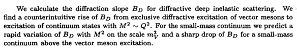 We calculate the diffraction slope Bp for diffractive deep inelastic scattering. We find a counterintuitive rise of Bp from exclusive diffractive excitation of vector mesons to excitation of continuum states with Μ2 ~ Q2. For the small-mass continuum we predict a rapid variation of Вд with M2 on the scale m.y and a sharp drop of Bo for a small-mass continuum above the vector meson excitation.