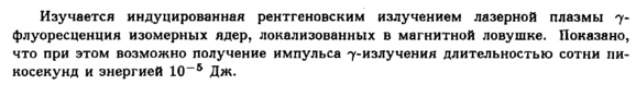 Изучается индуцированная рентгеновским излучением лазерной плазмы 7-флуоресценция изомерных ядер, локализованных в магнитной ловушке. Показано, что при этом возможно получение импульса 7-излучения длительностью сотни пи-косекунд и энергией Ю-5 Дж.