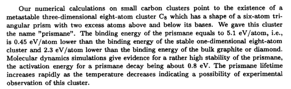 Prismane C8: a new form of carbon?