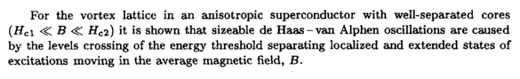 For the vortex lattice in an anisotropic superconductor with well-separated cores (Hci <C ÷ <C îÓÇ) it is shown that sizeable de Haas-van Alphen oscillations are caused by the levels crossing of the energy threshold separating localized and extended states of excitations moving in the average magnetic field, B.