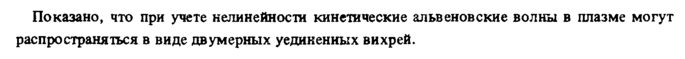Показано, что при учете нелинейности кинетические альвеновские волны в плазме могут распространяться в виде двумерных уединенных вихрей.