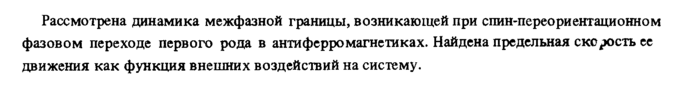 Рассмотрена динамика межфазной границы, возникающей при спин-переориентационном фазовом переходе первого рода в антиферромагнетиках. Найдена предельная скорость ее движения как функция внешних воздействий на систему.