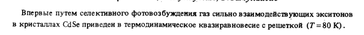 Впервые путем селективного фотовозбуждения газ сильно взаимодействующих экситонов в кристаллах CdSe приведен в термодинамическое квазиравновесие с решеткой (Г = 80 К).