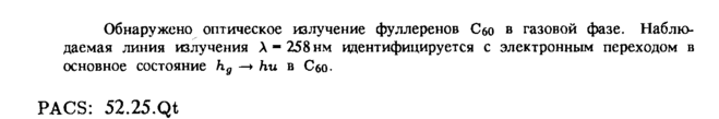 Первое наблюдение излучения фуллеренов в газовой фазе
