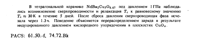 В тетрагональной керамике NdBa2Cu30g67 под давлением 1ГПа наблюдались возникновение сверхпроводимости и релаксация Тс к равновесному значению Тс « 30 К в течение 5 дней. После сброса давления сверхпроводящая фаза исчезала через 1.3 ч. Поведение объясняется перераспределением заряда в результате индуцированного давлением кислородного упорядочения в плоскостях СиОх. PACS: 61.50.-f, 74.72.Bk