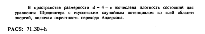 В пространстве размерности d 4 — с вычислена плотность состояний для уравнения Шредингера с гауссовским случайным потенциалом во всей области энергий, включая окрестность перехода Андерсона. PACS: 71.30+h