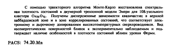 С помощью траекторного алгоритма Монте-Карло восстановлена спектральная плотность состояний в двумерной трехзонной модели Эмери для 108-узельного кластера СизбОтг. Получены дисперсионные зависимости квазичастиц в верхней хаббардовской зоне и в зоне коррелированных состояний, что соответствует электронному и дырочному допированиям высокотемпературных сверхпроводников. Вид изоэнергетических поверхностей близок к экспериментально наблюдаемым и подтверждает наличие особенностей в плотности состояний вблизи уровня Ферми. PACS: 74.20.Mn