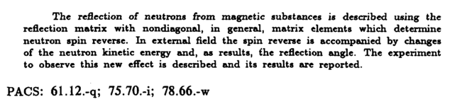 The reflection of neutrons from magnetic substances is described using the reflection matrix with nondiagonal, in general, matrix elements which determine neutron spin reverse. In external field the spin reverse is accompanied by changes of the neutron kinetic energy and, as results, ihe reflection angle. The experiment to observe this new effect is described and its results are reported. PACS: 61.12.-q; 75.70.-i; 78.66.-w