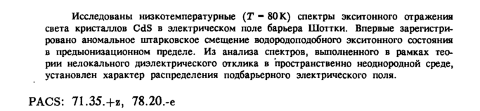 Исследованы низкотемпературные (Χ 80 К) спектры экситонного отражения света кристаллов CdS в электрическом поле барьера Шоттки. Впервые зарегистрировано аномальное штарковское смещение водородоподобного экситонного состояния в предыонизационном пределе. Из анализа спектров, выполненного в рамках теории нелокального диэлектрического отклика в пространственно неоднородной среде, установлен характер распределения подбарьерного электрического поля. Ρ ACS: 71.35.+», 78.20.-е