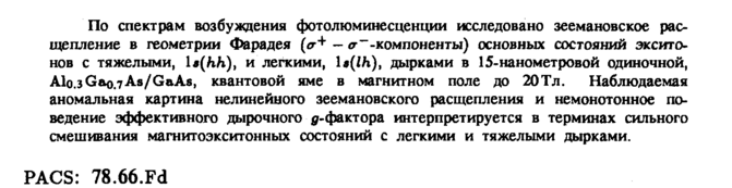 По спектрам возбуждения фотолюминесценции исследовано зеемановское расщепление в геометрии Фарадея (<г+ — σ~~ -компоненты) основных состояний жсито-нов с тяжелыми, ls(hh)t и легкими, \a(lh)t дырками в 15-нанометровой одиночной, Alo.3Gao.7As/GaAs, квантовой яме в магнитном поле до 20Тл. Наблюдаемая аномальная картина нелинейного зеемановского расщепления и немонотонное поведение эффективного дырочного д-фактора интерпретируется в терминах сильного смешивания магнитоэкситонных состояний с легкими и тяжелыми дырками. PACS: 78.66.Fd