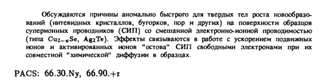Обсуждаются причины аномально быстрого для твердых тел роста новообразований (нитевидных кристаллов, бугорков, пор и других) на поверхности образцов суперионных проводников (СИП) со смешанной электронно-ионной проводимостью (типа Cu2-iSe, AgzTe). Эффекты связываются в работе с ускорением подвижных ионов и активированных ионов "остова" СИП свободными электронами при их совместной "химической" диффузии в образцах. PACS: 66.30.Ny, 66.90.+I