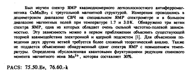 Исследование ЯМР в квазиодномерном антиферромагнетике CsMnBr3