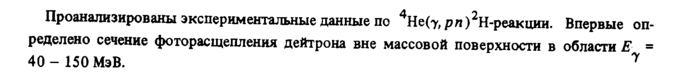 Проанализированы экспериментальные данные по 4Не(7, рл)2Н-реакции. Впервые определено сечение фоторасщепления дейтрона вне массовой поверхности в области Ε = 40 150 МэВ. 7