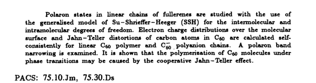 Polaron states in linear chains of fullerenes are studied with the use of the generalized model of Su-Shrieffer-Heeger (SSH) for the intermolecular and intramolecular degrees of freedom. Electron charge distributions over the molecular surface and Jahn-Teller distortions of carbon atoms in Ceo are calculated self-consistently for linear Ceo polymer and CJJq polyanion chains. A polaron band narrowing is examined. It is shown that the polymerization of Ceo molecules under phase transitions may be caused by the cooperative Jahn-Teller effect. PACS: 75.10.Jm, 75.30.Ds