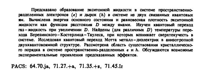 Предсказано образование экситонной жидкости в системе пространственно-разделенных электронов (е) и дырок (А) в системе из двух связанных квантовых ям. Вычислена энергия основного состояния и равновесная плотность экситонной жидкости как функция расстояния D между ямами. Изучен квантовый переход газ-жидкость при увеличении D. Найдены (для различных D) температуры перехода Березинского-Костерлица-Таулеса, при которых возникает сверхтекучесть в системе. Исследован квантовый переход Мотта металл-диэлектрик в анизотропной двухквантовоямной структуре. Рассмотрена область существования кристаллического порядка в системе пространственно-разделенных е и h. Обсуждаются возможные экспериментальные проявления предсказанных эффектов. PACS: 64.70.ja, 71.27.+а, 71.35.+z, 71.45.1г
