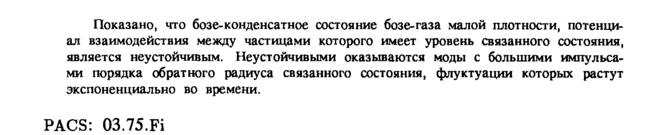 Показано, что бозе-конденсатное состояние бозе-газа малой плотности, потенциал взаимодействия между частицами которого имеет уровень связанного состояния, является неустойчивым. Неустойчивыми оказываются моды с большими импульсами порядка обратного радиуса связанного состояния, флуктуации которых растут экспоненциально во времени. PACS: 03.75.Fi