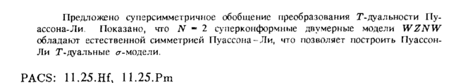 Предложено суперсимметричное обобщение преобразования Г-дуальности Пу-ассона-Ли. Показано, что N — 2 суперконформные двумерные модели WZNW обладают естественной симметрией Пуассона-Ли, что позволяет построить Пуассон-Ли Х-дуальные σ-модели. PACS: ll.25.Hf, ll.25.Pm