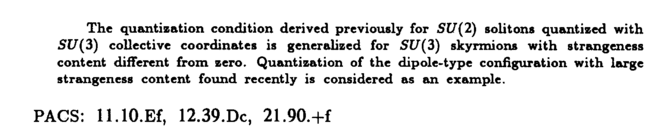 The quantization condition derived previously for SU(2) soiitons quantized with 517(3) collective coordinates is generalized for 517(3) skyrmions with strangeness content different from zero. Quantization of the dip ole-type configuration with large strangeness content found recently is considered as an example. PACS: ll.10.Ef, 12.39.Dc, 21.90.+f