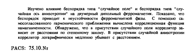 Изучено влияние беспорядка типа "случайное поле" и беспорядка типа "случайная ось анизотропии" на двумерный дипольный ферромагнетик. Показано, что беспорядок приводит к неустойчивости ферромагнитной фазы. С помощью самосогласованного гармонического приближения вычислена корреляционная функция намагниченности. Обнаружено, что в присутствии случайного поля коррелятор зависит от расстояния по степенному закону. В присутствии случайной анизотропии коррелятор логарифмически медленно убывает с расстоянием. PACS: 75.10.Nr