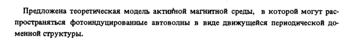Предложена теоретическая модель активной магнитной среды, в которой могут распространяться фотоиндуцированные автоволны в виде движущейся периодической доменной структуры.