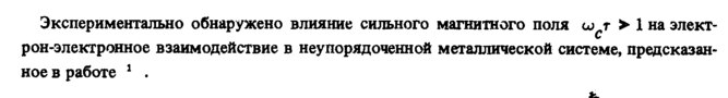Экспериментально обнаружено влияние сильного магнитного поля ω^τ > 1 на электрон-электронное взаимодействие в неупорядоченной металлической системе, предсказанное в работе 1 .