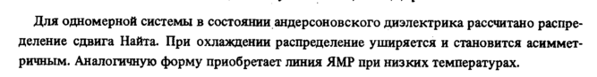 Для одномерной системы в состоянии андерсоновского диэлектрика рассчитано распределение сдвига Найта. При охлаждении распределение уширяется и становится асимметричным. Аналогичную форму приобретает линия ЯМР при низких температурах.