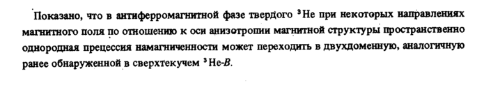 Показано, что в антиферромагнитной фазе твердого 3Не при некоторых направлениях магнитного поля по отношению к оси анизотропии магнитной структуры пространственно однородная прецессия намагниченности может переходить в двухдоменную, аналогичную ранее обнаруженной в сверхтекучем 3 Не-/?.