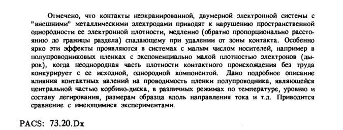 Отмечено, что контакты неэкранированной, двумерной электронной системы с "внешними" металлическими электродами приводят к нарушению пространственной однородности ее электронной плотности, медленно (обратно пропорционально расстоянию до границы раздела) спадающему при удалении от зоны контакта. Особенно ярко эти эффекты проявляются в системах с малым числом носителей, например в полупроводниковых пленках с экспоненциально малой плотностью электронов (дырок), когда неоднородная часть плотности контактного происхождения без труда конкурирует с ее исходной, однородной компонентой. Дано подробное описание влияния контактных явлений на проводимость пленки полупроводника, являющейся центральной частью корбино-диска, в различных режимах по температуре, уровню и составу легирования, размерам образца вдоль направления тока и т.д. Приводится сравнение с имеющимися экспериментами. PACS: 73.20.Dx