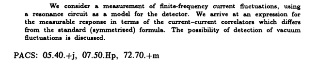 We consider a measurement of finite-frequency current fluctuations, using a resonance circuit as a model for the detector. We arrive at an expression for the measurable response in terms of the current-current correlators which differs from the standard (symmetrised) formula. The possibility of detection of vacuum fluctuations is discussed. PACS: 05.40.+j, 07.50.Hp, 72.70.+m