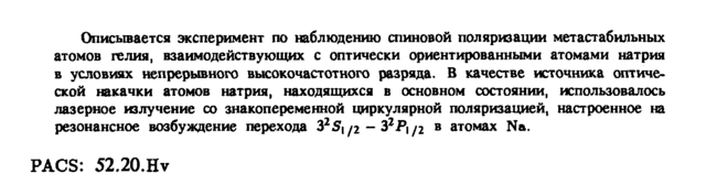 Описывается эксперимент по наблюдению спиновой поляризации метастабильных атомов гелия, взаимодействующих с оптически ориентированными атомами натрия в условиях непрерывного высокочастотного разряда. В качестве источника оптической накачки атомов натрия, находящихся в основном состоянии, использовалось лазерное излучение со знакопеременной циркулярной поляризацией, настроенное на резонансное возбуждение перехода 325(/2 32Р|/2 в атомах Na. PACS: 52.20.Hv